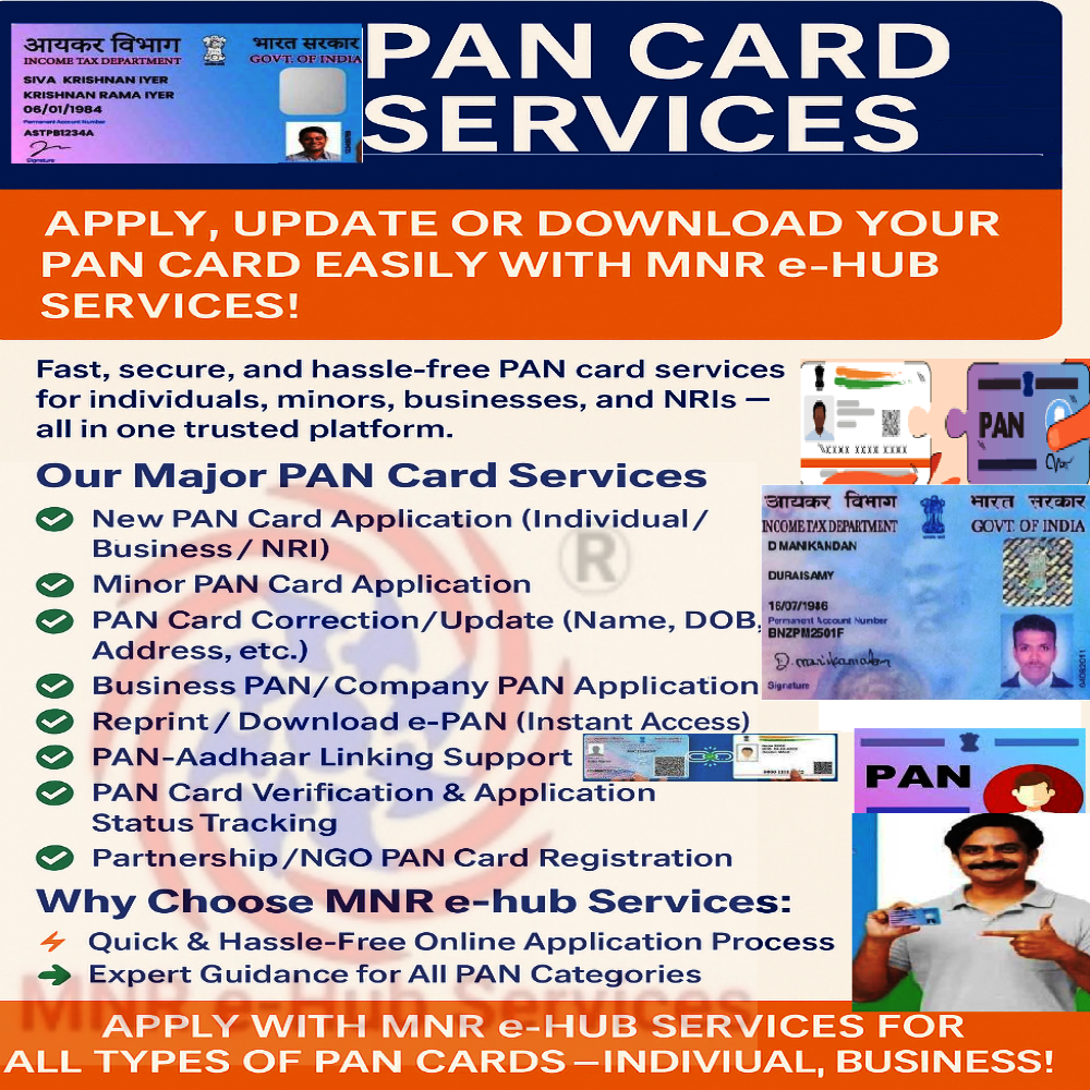 PAN Card Services (New PAN Card/Corrections/Minor PAN/Instant PAN) etc.,