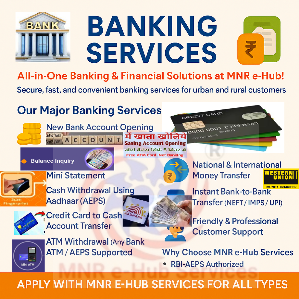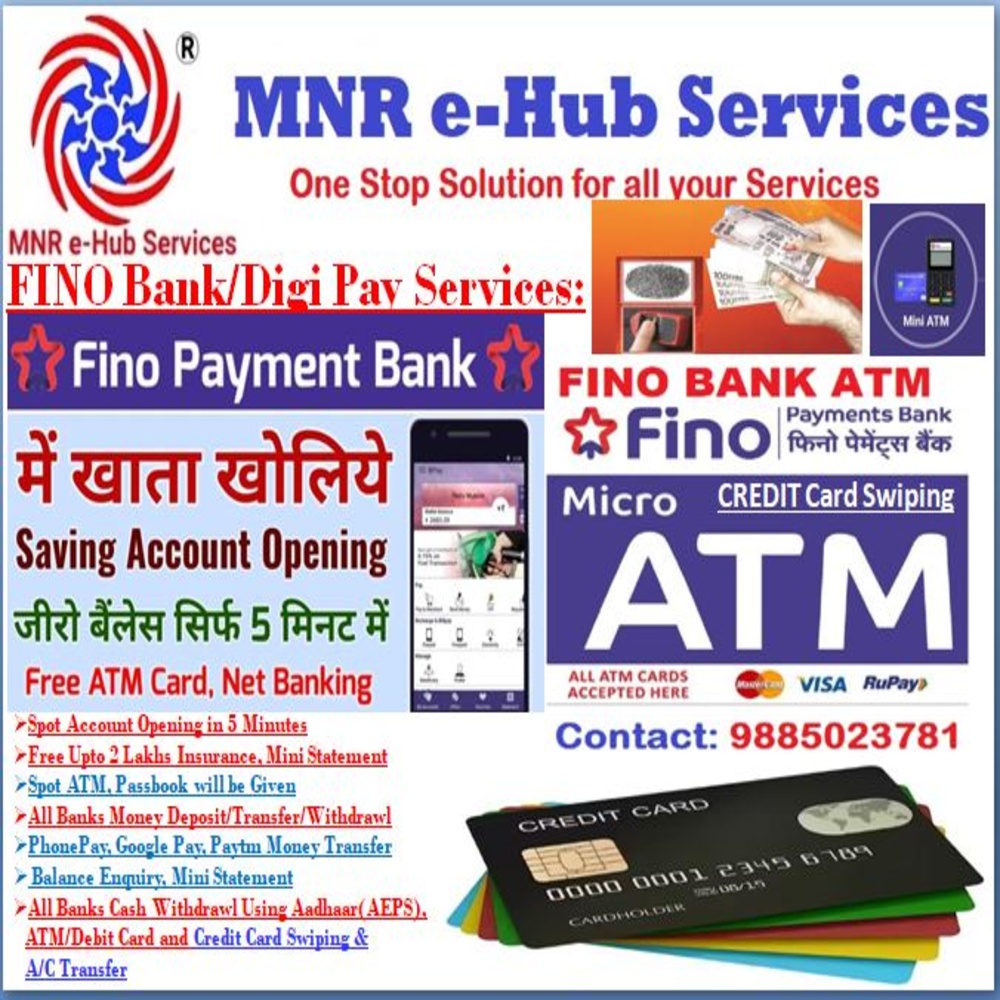 Fino Payments Bank Services (Cash Withdrawl using Aadhaar/ATM Card/Credit Card, Money Transfer etc.,)