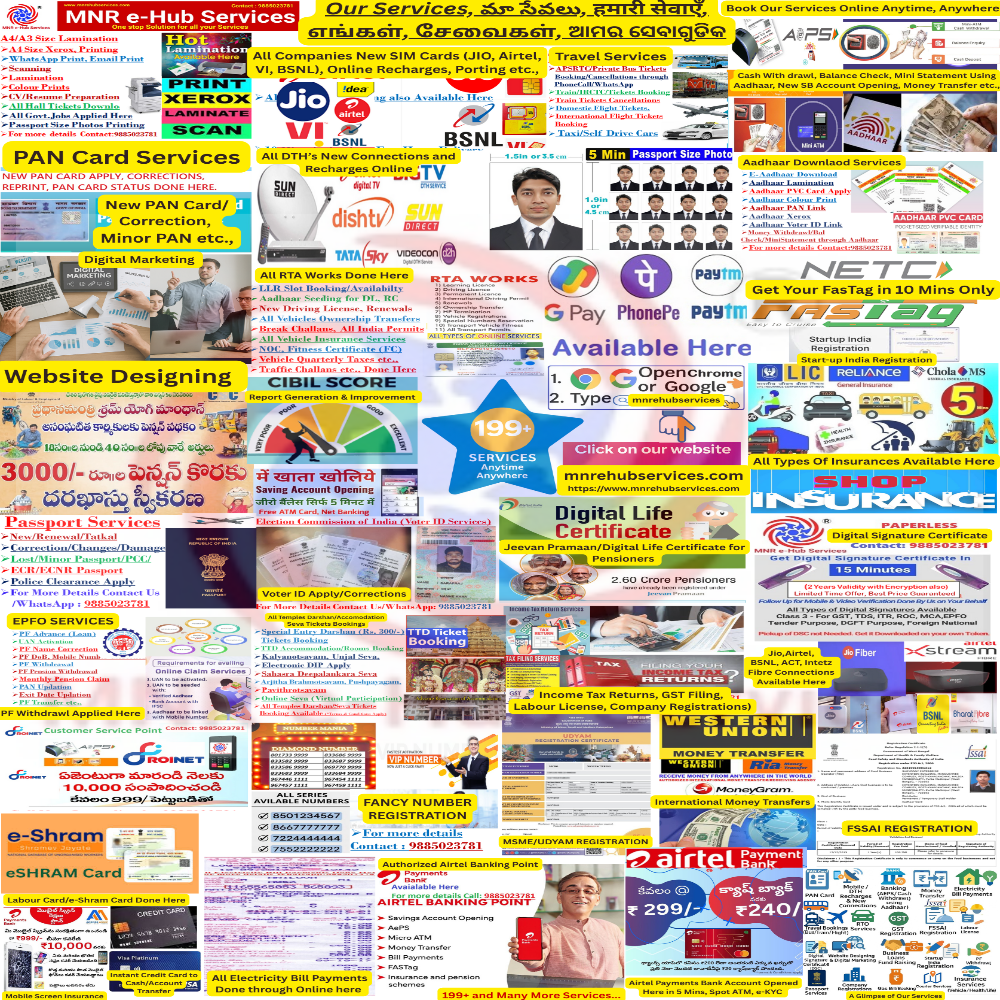 Airtel Payments Bank Services (Account Open, Money Transfer, AEPS, Insurance) etc.,