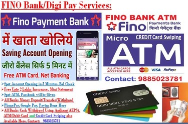 - Fino/NSDL/Axis/Airtel Payments Bank, (New SB/Current Account Opening, ATM Withdrawal) etc.,